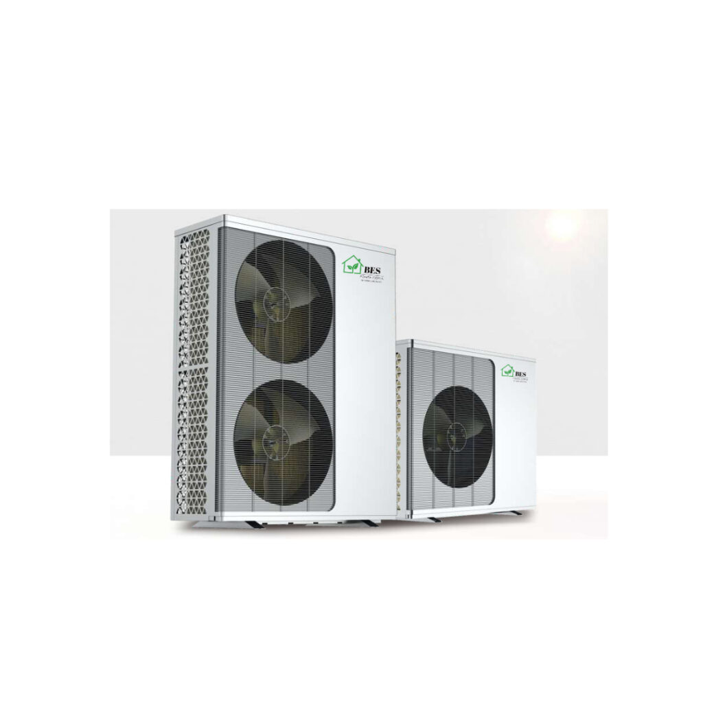 – Monoblock – hat das gesamte System außerhalb des Gebäudes, so dass nur der Brauchwassertank im Gebäude verbleibt.